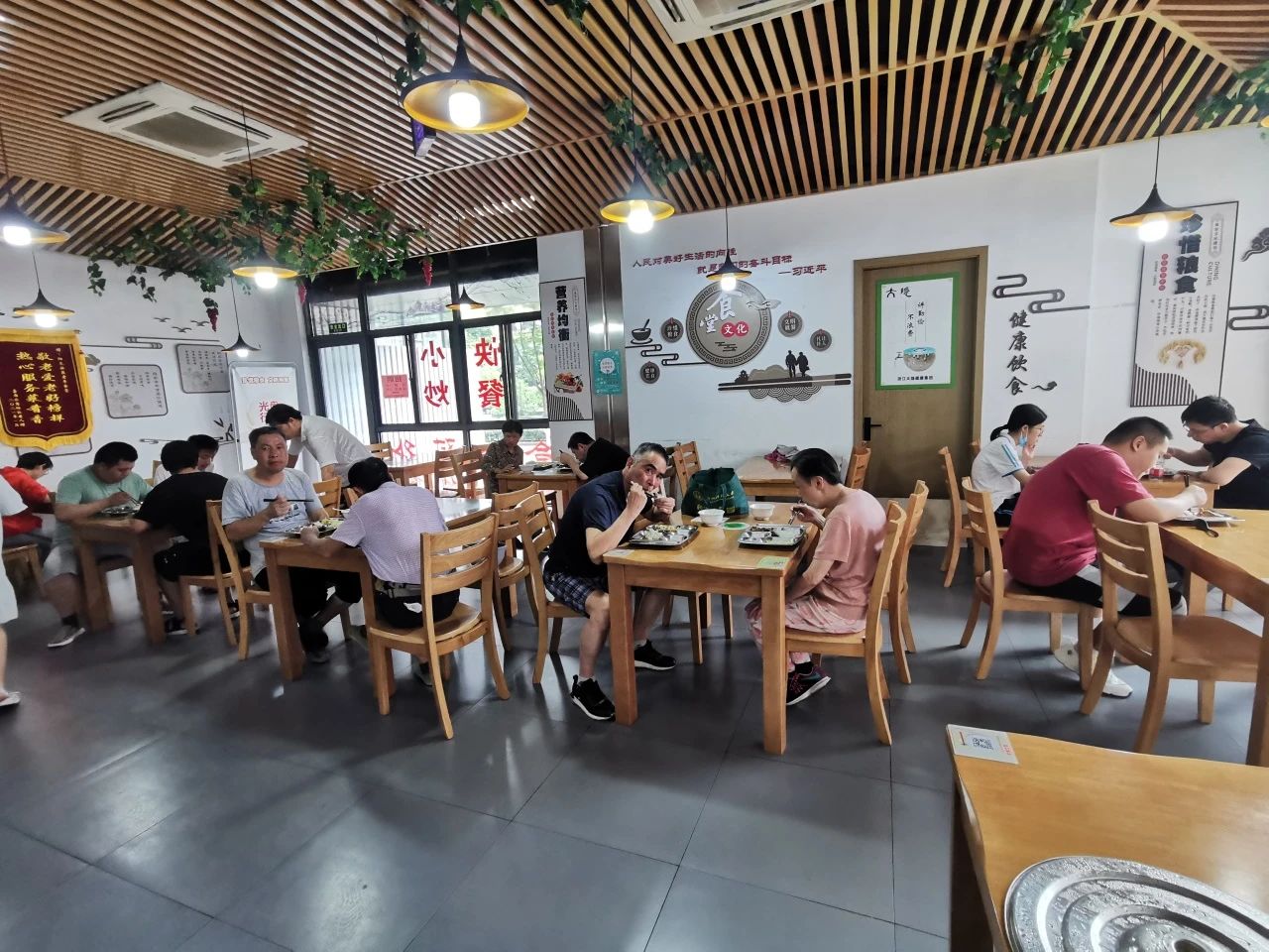 7月5日上午一场大暴雨后,杭城温度在连续几天的高温后终于往下走了点,趁着中午天气还算凉快,中午出来吃饭的人也多了起来。阳光馨园老年食堂价格实惠,味道又好,是文新生意最火的老年食堂,楼上的养老院、社区的老年人和附近公司上班的年轻人都喜欢来这里。