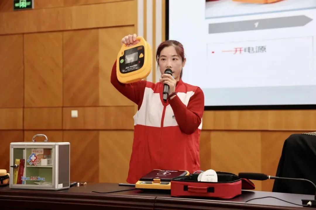 现场,萧山区红十字会培训师李薇结合法院工作特点和需求,围绕卫生应急救护处置,指导药箱使用、气道异物梗阻处理、心肺复苏操作和AED使用等方面,对相关应急救护知识进行详细讲解并现场示范。