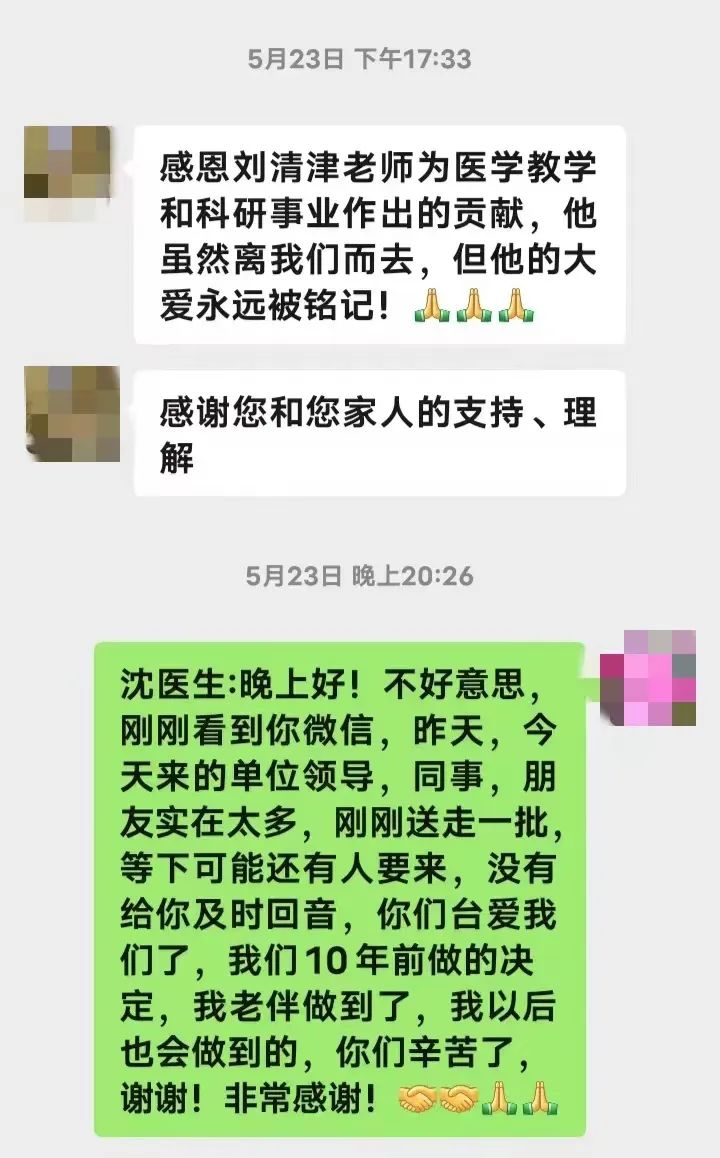 病情来得突然,也恶化得很快。去世那天,程银仙一直在哭,“手一直是抖的。”即使这样,她还是要完成刘清津的遗愿,进行遗体捐献和器官捐赠。“医生说,他的眼角膜很好,将会给一个等待捐赠的人带来希望,他的遗体也将用于医学教学和研究。”
